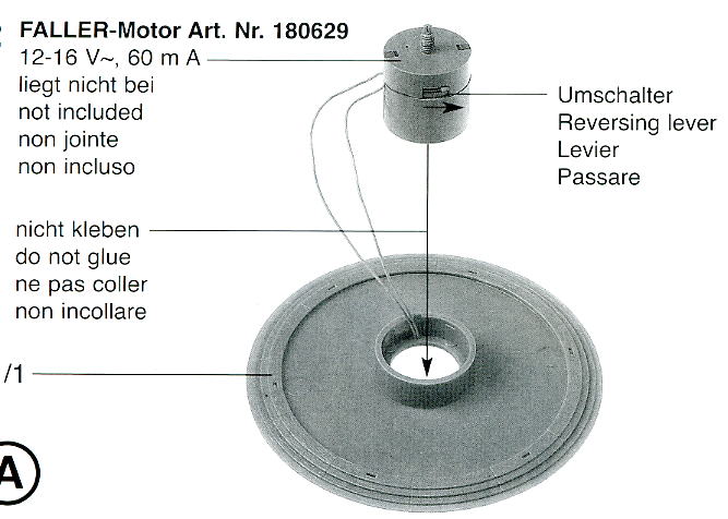 Bausatz nur ein Standmodell! Die Bauanleitung verrät aber, wie man es realisieren kann. Den Motor kann man kaufen, kostet aber so etwa 15 bis 20€, das passt dann aber sehr gut. Will man selbst so etwas bauen, bedarf es etwas Aufwand, um z.B. ein Getriebe zu bauen. Es gibt auch andere Getriebemoteren, die passen dann sicher von der Geometrie nicht. (Bild aus Bauanleitung) |