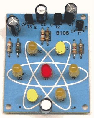 Auf der Basis von Transistoren werden zwei Flip-Flops erstellt, die mit unterschiedlicher Frequenz LED's auf der Leiterplatte ansteuern, es flackert sehr ordentlich.