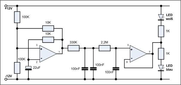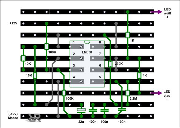 Als aktives Bauelement wird der Operationsverstärker LM358 verwendet.