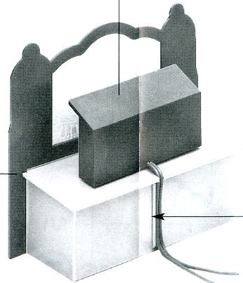 So wird dann der Kasten auf die Bude gesetzt. Es fehlen im Bausatz lediglich die Lampen und der Anschlussdraht, das hat der Bastler sicher! Das Loch im Dach der Bude muss natürlich auch auf 3mm gebohrt werden. (Bild aus Bauanleitung) |