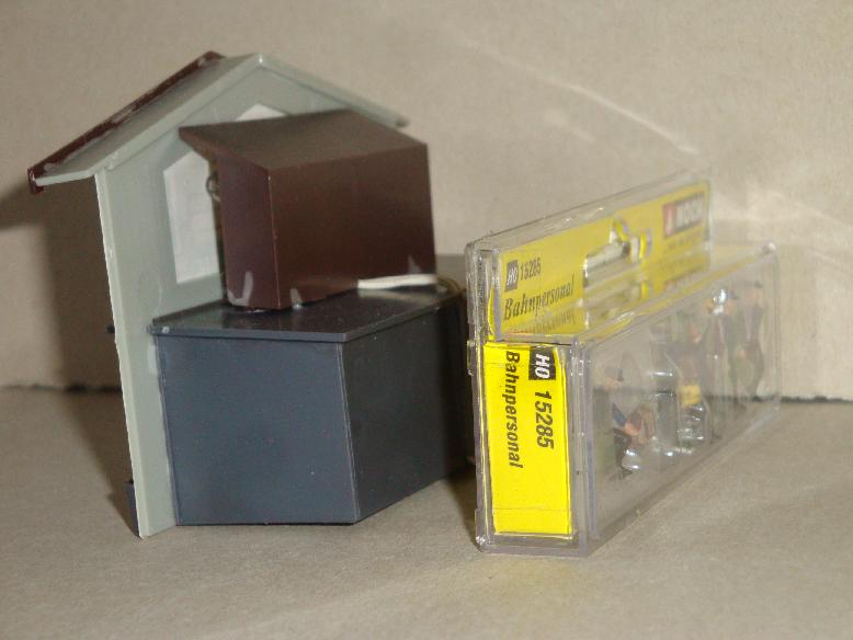 Plastikresten gefertigt. Das Bedienhaus wurde aus Pappe erstellt, die Maße hängen natürlich vom Motor ab. Man sollte schon mal einen sehr langsam laufenden Motor verwenden. Das Häuschen ist bei mir etwa 3 x 3,5cm groß (kann man hier als Ausschneidebogen herunter laden). |