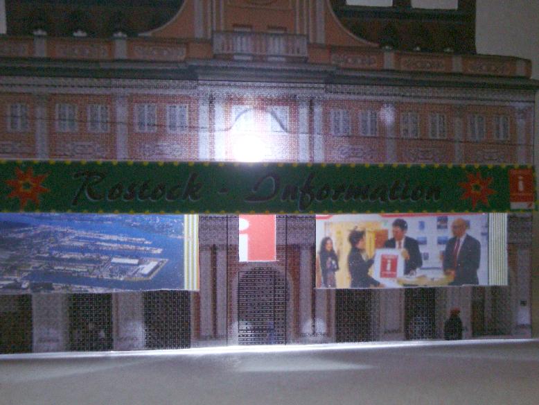 Hier ein Beispiel. Es wurde ein Bild vom Rostocker Rathaus als Front genutzt und daraus ein Informations-Stand gestaltet. Ein Problem gibt es aber bei den Kisten, die Aufkleber sind sehr schlecht zu entfernen. Mit Verdünnung muss man vorsichtig sein, denn die greift die Plasik eventuell an. Für die "Informations-Bude" kann man sich den Ausschneidebogen herunter laden. |