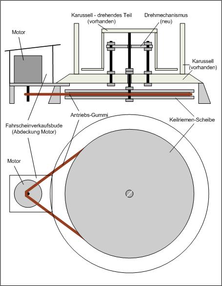beim Karussell der Antrieb und beim Toilettenwagen Treppen und Beleuchtung.