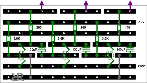 geführt werden. Jetzt sieht das mit 3 Spannungen so aus:![]() Im Anbau befinden sich außer der Buchse die Spannungsregler für die Spannungen 9 und 12V. |