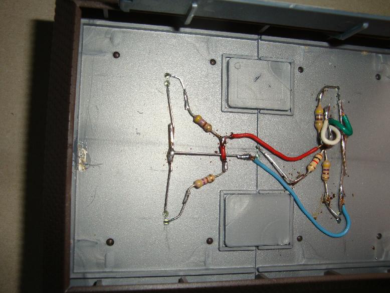 Zusätzlich wurden gleich 4 weitere LED's eingebaut. Die 5 Widerstande befinden sich auf der Decke und verschwinden unter dem Dach. |