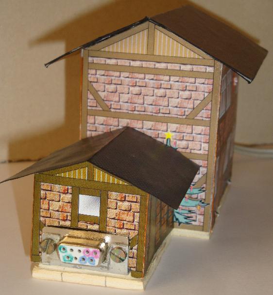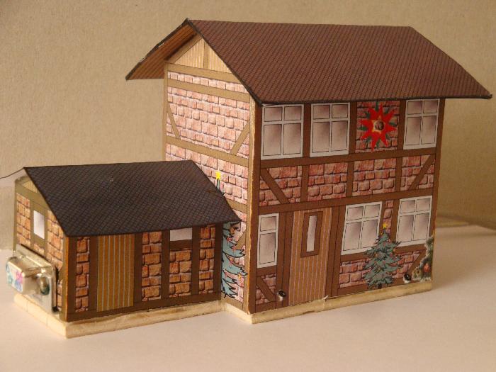 Der Anbau links war am Anfang nicht vorhanden, das kam später! Für das Haus gibt es auch einen einfachen kleinen Ausschneidebogen. Fenster und Türen wurden nicht extra erstellt (kann man machen, das Haus ist aber voll mit dem Trafo). |