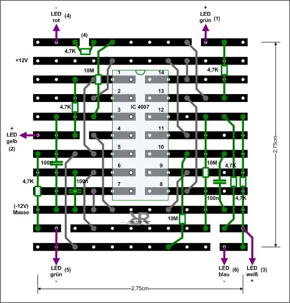 es wird immer eine LED ausgeschaltet. Die Leiterplatte kann man auch für diesen