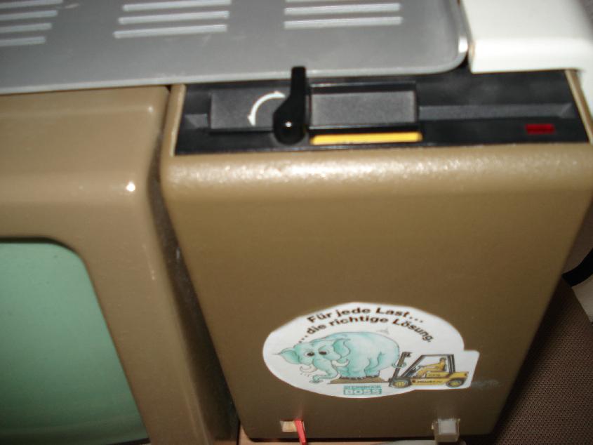 Der Einbau erfolgte wider allen bisher bekannten Methoden so, dass die Floppy von oben eingesteckt werden musste (war der einzig mögliche Platz im System). Dazu wurde der am Bedienterminal vorhandene Bediendeckel ausgetauscht und entsprechend verändert. Gleichzeitig wurde hier auch der Einschalter und der Reset-Knopf eingebaut (das System brauchte einen Reset-Knopf, da nicht mit eingesteckter Floppy gestartet werden sollte