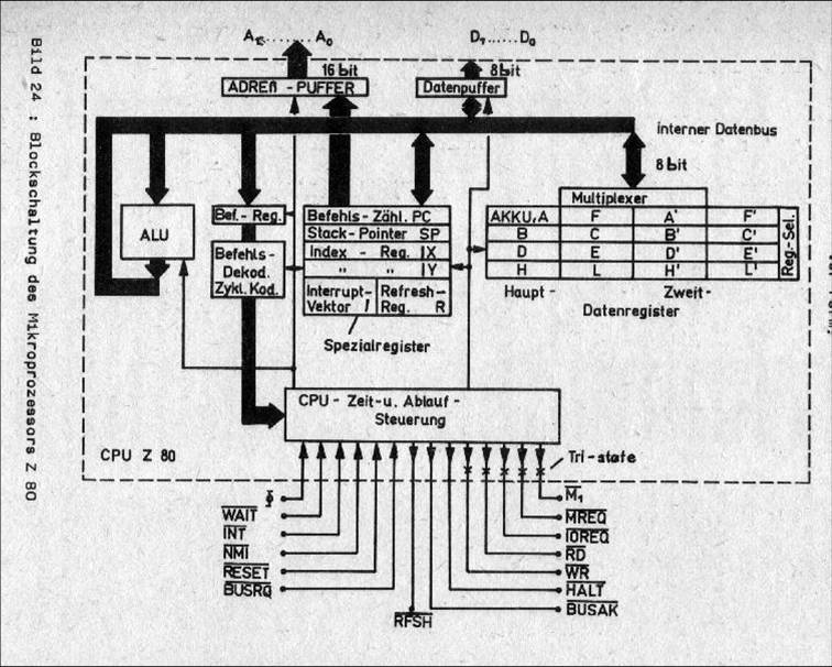 Der Rechner arbeitet mit dem Prozessor Z80 (U880) mit dem Betriebssystem CP/M (SCP).