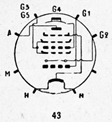 | Heizstrom = 130mA Anodenspannung = 135V Schirmgitterspannung = Ug2=135/Ug3=Ug5=45V Steilheit = 0.27mA/V Innenwiderstand = 2.5MOhm Kapazität Anode-Gitter = 0.07pF Belastung = 0.5Watt Gittervorspannung = -0.5V Anodenstrom = 0.7mA Heizungs-Art = 2V Gleichstr. (Sockel-Bild: 43) | ![]() |