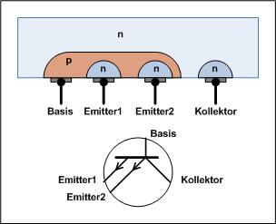 Es werden ins Basismaterial gleich mehrere pn-Übergänge eingebracht, also quasi