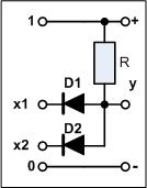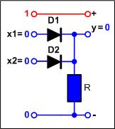 Werden beide Dioden auf 0 gelegt, fließt kein Strom durch R, also ist der