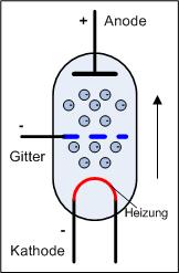 sich ein variabel negativ geladenes Gitter, welches die Menge des Elektronenstroms regelt. |