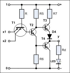 Diese Schaltung stellt eine Transistorlogik dar, die aber auf anderem Gebiet eine