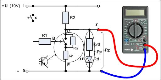 Wie man leicht sehen kann, wird jeweils nur die Emitter-Kollektor-Strecke