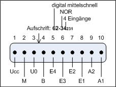 digitaler Baustein ist. (die Bezeichnung der Anschlussbeine ist nicht sicher, vermutlich wird der Ausgang auf 10 liegen, die Eingänge rutschen eimal nach links) |