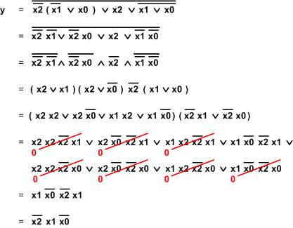 In der Mitte wurden alle doppelten Negationen mit eingetragen und rot durchgestrichen,