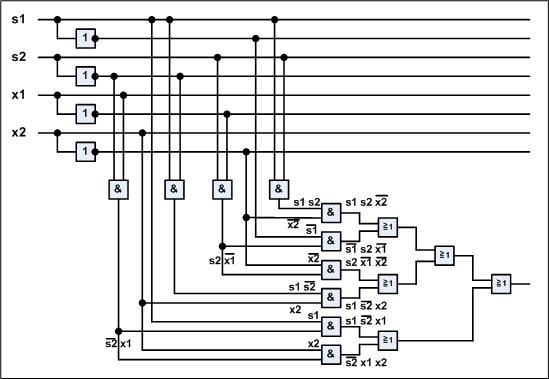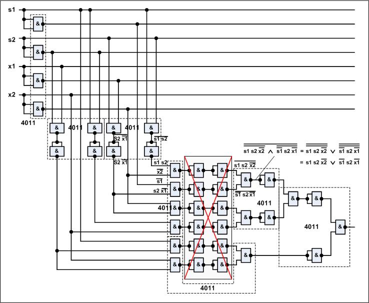 Der nächste Schritt ist dann die alle Gatter durch Ersatz-Schaltungen aus NAND's zu ersetzen: