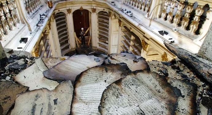 Papier ist ein guter Speicher, hält bei entsprechender Lagerung 100-e von Jahren, hat aber einem Feuer nichts entgegen zu setzen. So ist am 2. September 2004 ein Großbrand in der Weimarer "Herzogin Anna Amalia Bibliothek" ausgebrochen und hat mehr als 50.000 unschätzbar wertvolle Bücher verbrannten, 118.000 wurden zum Teil schwer beschädigt. |
