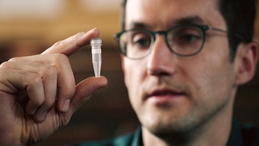 (Prof. Reinhard Heckel forscht an der Übersetzung von Daten in DNA; Reagenzfläschen mit DNA-Material) Liegt nun so das neue Rezept für die Daten-DNA vor, geht das Ganze ans Labor. Dort werden die Stränge nun gemäß Vorgabe aus G, T, C und A vollautomatisiert zusammengesetzt. DNA-Stränge werden unter anderem durch verschiedene Technologien, wie zum Beispiel DNA-Print-Verfahren, Nukleotid für Nukleotid auf einem Array aufgebaut. Das ist relativ schwierig umzusetzen und daher im Moment noch sehr teuer. |