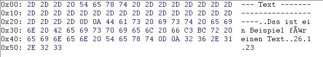 Das ist ein Beispiel 44 61 73 20 69 73 74 20 65 69 6E 20 42 65 69 73 70 69 65 6C |