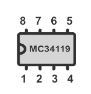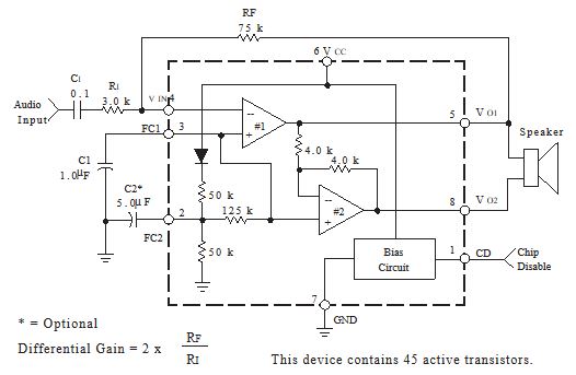 IC MC34119 So sieht das Teil innen aus, ist nicht gewaltig, aber immerhin 45 Transistoren - und er erfüllt seinen Zweck. Wenn ich das richtig sehe, besteht er aus einem Differenzverstärker und einem weiteren Verstärker zum negieren des Signals (Verstärkung 1). |