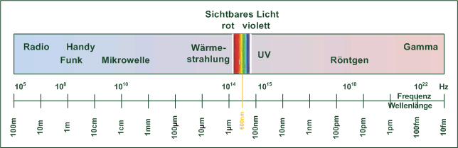 Das alles schwirrt im Raum herum, breitet sich mit Lichtgeschwindigkeit aus, aber wir Menschen haben dafür leider keinen Sensor, wir brauchen technische Hilfmittel. So ein Hilfsmittel ist der Schwingkreis. Wir haben am Beispiel der Schaukel gesehen, dass bei Resonanz der Schwingkreis auf kleine Impulse / Schwingungen mit großer Wirkung reagieren kann. Mit dem Drehko kann man nun den Schwingkreis in Resonanz mit einer gewünschten Radiowelle bringen, man stellt die Frequenz ein. Das Ergebnis ist, dass dann die kleine Radiowelle einen grossen Ausschlag im Schwingkreis bewirkt. Man beachte, dass es dem Sender völlig egal ist, wieviele Schwingkreise irgendwo auf der Welt diese Schwingungen verarbeiten, diese Wellen brauchen kein Medium, sie funktionieren auch im luftleeren Raum! Die Wellen haben an bestimmten Frequenzen weitere nutzbare Eigenschaften, Kurzwellen (etwa 3 bis 30 MHz) können an der Ionosphäre reflektiert werden und können so an jeder Stelle auf der Erde empfangen werden. Manchmal laufen sie auch mehrfach um die Erde, dann hat der Sender ein Echo! Oder Frequnzen etwa im Bereich von 1014 - 1015Hz, da haben wir einen Sensor, das ist Licht, können wir sehen. |