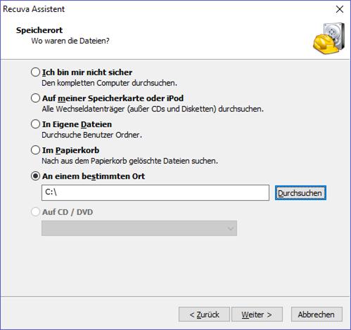 3.Fenster: wo soll gesucht werden (Datenträger/Ordner)
