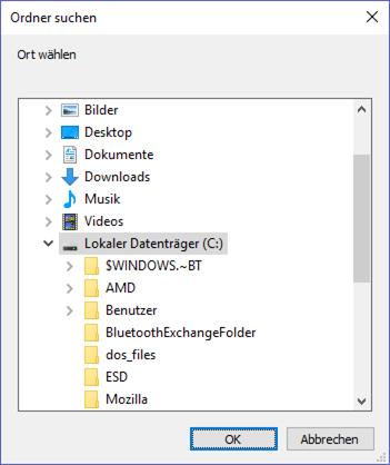 4.Fenster: (anderes Fenster): der Ort wird hier in "Durchsuchen" ausgewählt