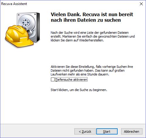 Setzt man in dem Kästchen einen Haken, wird intensiver gesucht, es dauert aber auch länger (sollte man,